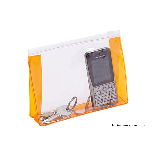 Cosmetiquero de PVC clear con detalle de color en el fuelle.