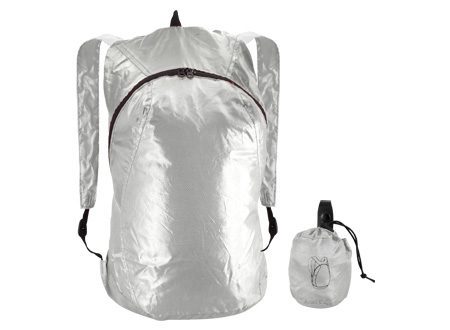 Mochila retráctil modelo «Capsule» de poliéster Ripstop 210D. Se retrae y se guarda en bolsillo interior, quedando de un tamaño cilíndrico compacto de 7 x 10 cm.