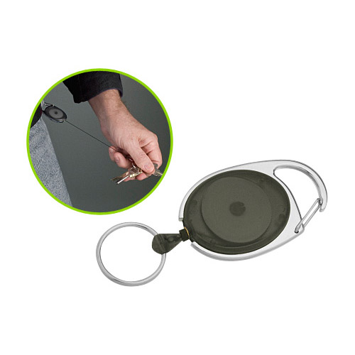 Llavero con Mosquetón y extensor retráctil, en color traslúcido.