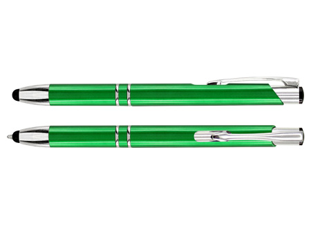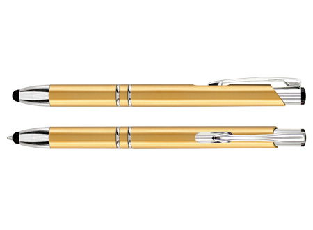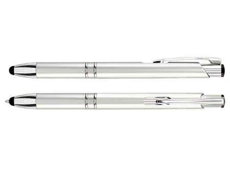 Bolígrafo plástico modelo «Arrow Touch», cuerpo de color metalizado, con puntero Touch-Screen. Escritura azul.