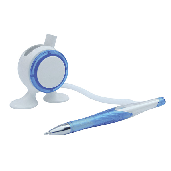 Bolígrado de Plástico con base de plástico blanca y detalles de color. Tinta negra.