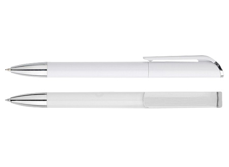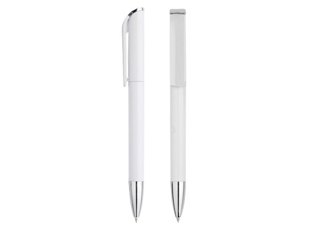 Bolígrafo blanco «Angel», con clip ancho plano, especial para imprimir sobre él. Escritura azul.