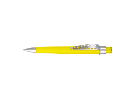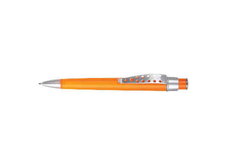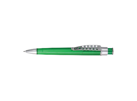 Bolígrafo plástico color frozen modelo «Evolution» con clip metálico con orificios. Escritura azul.