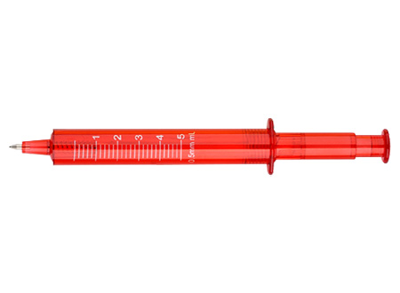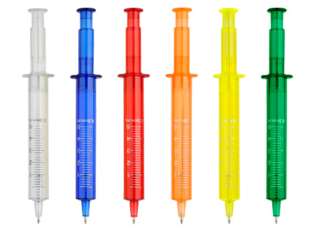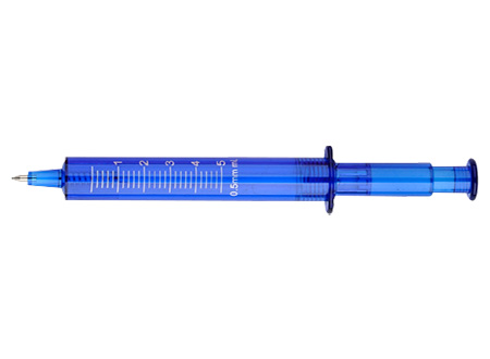 Bolígrafo plástico promocional «Jeringa». Escritura Azul.