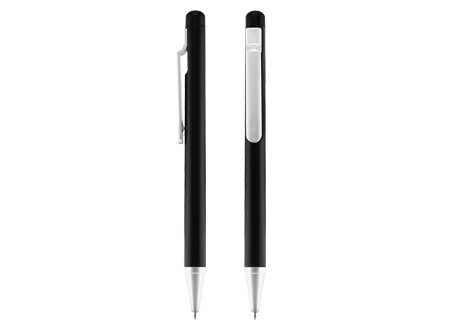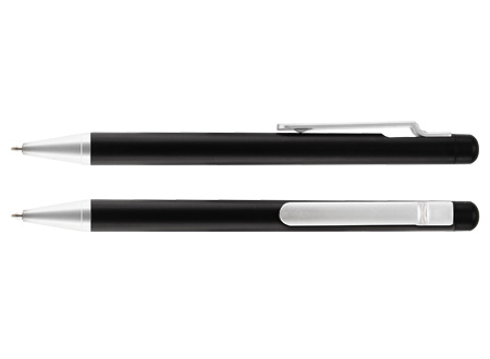 Bolígrafo plástico negro «Shadow» con terminales plata. Escritura Azul.