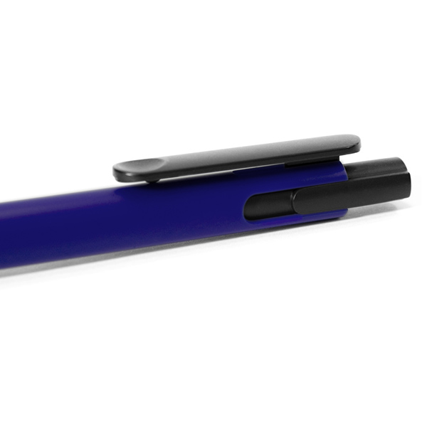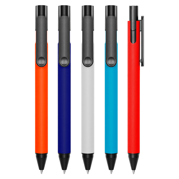 Plástico. Bolígrafo con pulsador. Cuerpo plástico de color. Pulsador, clip y puntera plásticos color negro. Detalle en el clip. Tinta negra.