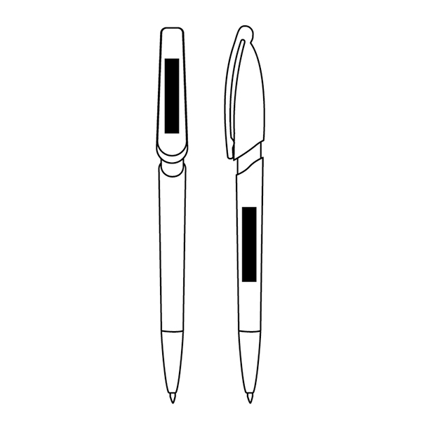 Plástico. Apertura retráctil con pulsador. Clip plástico, color plata en punta y cuerpo. Tinta negra.