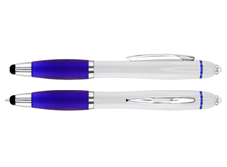 Bolígrafo plástico modelo «Wind Stella LED». Incluye puntero «Touch-Screen» y linterna LED. Escritura Azul.