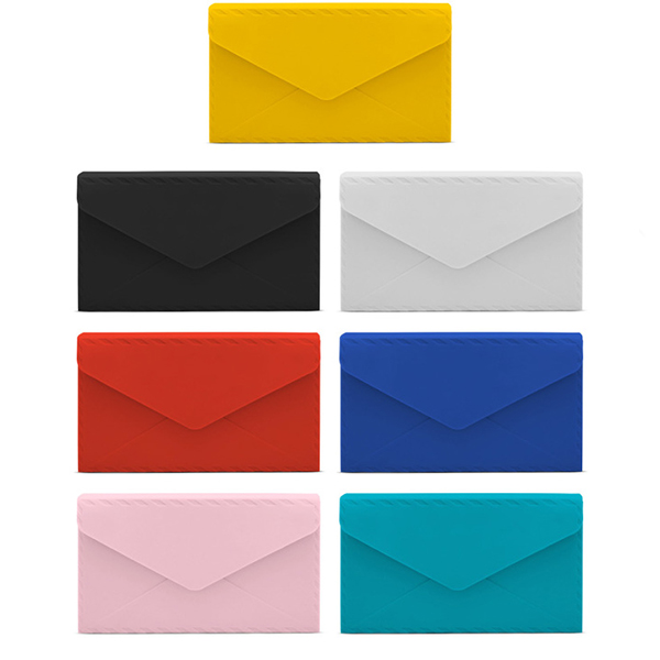 Cartera de mano en forma de sobre con solapa imantada y correa desmontable. Silicona. 21,5 x 12,2 x 5 cm.