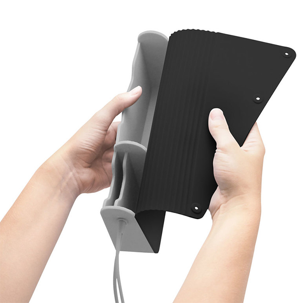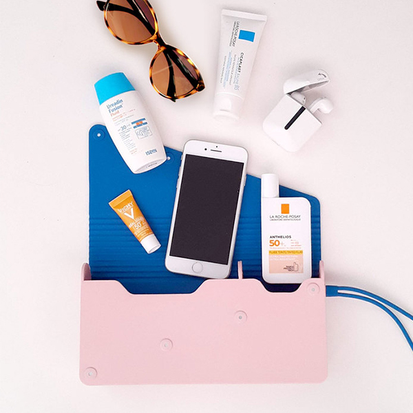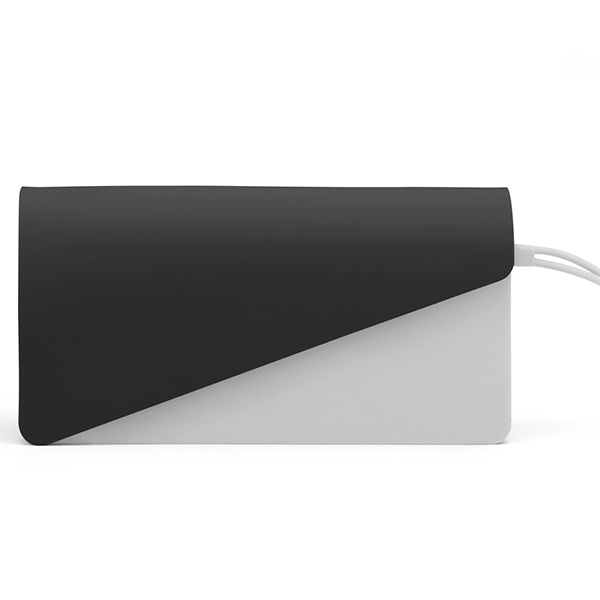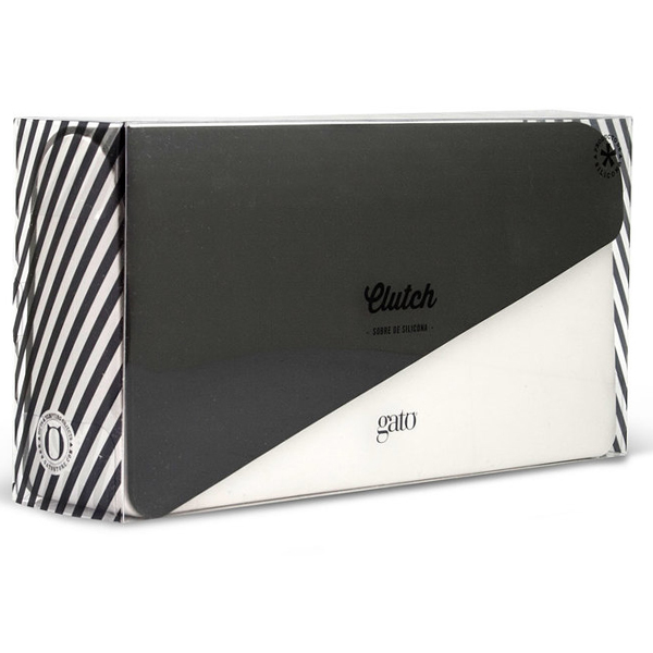 Sobre de silicona con solapa imantada y correa desmontable. Su interior tiene 3 compartimentos para guardar de todo. Silicona. 23,5 x 12 x 6,4 cm.