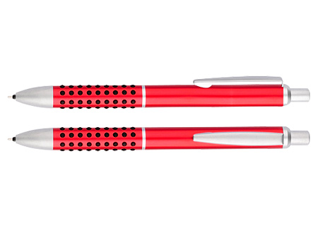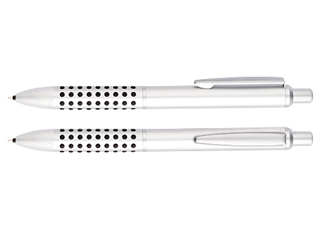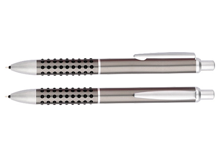 Portaminas metálico satinado modelo «Caterpillar», con lunares de goma negra que brindan una suave sensación de masaje dactilar al escribir.