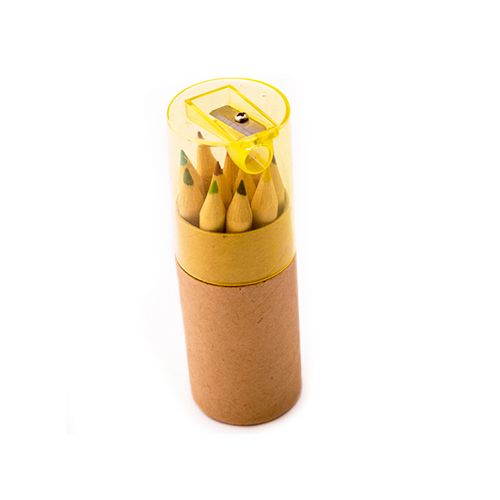 Tubo ecológico con 12 lápices de colores y sacapuntas en tapa plástica.
