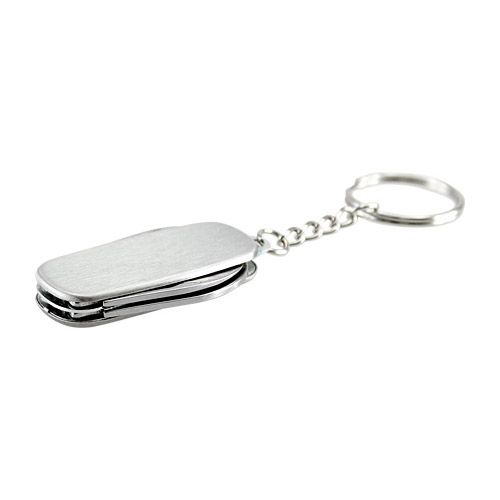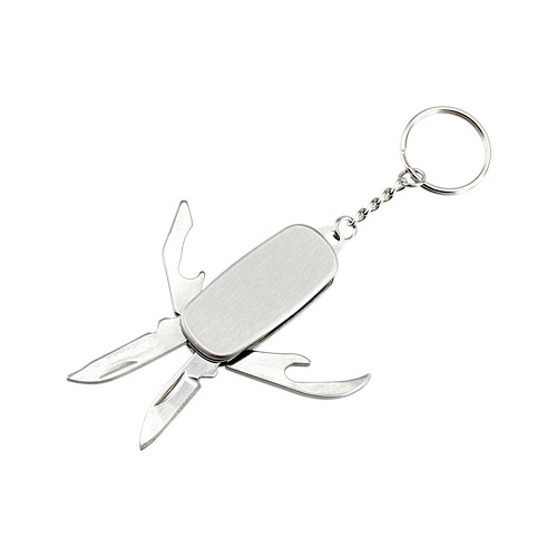 Llavero multiherramientas de Acero Inoxidable con 5 funciones. Presentación en cajita de regalo plateada.