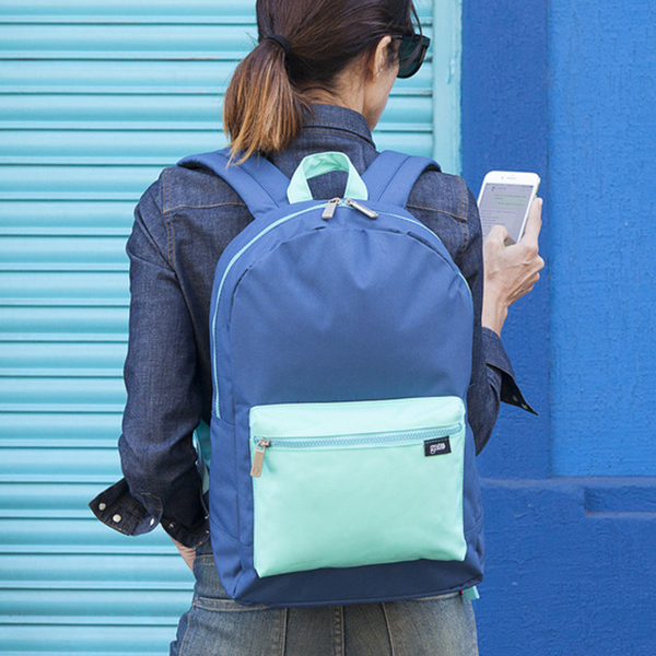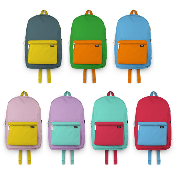 100% Poliester. 35 x 45 x 16 cm. Bolsillo frontal con mosquetón para llaves interno.