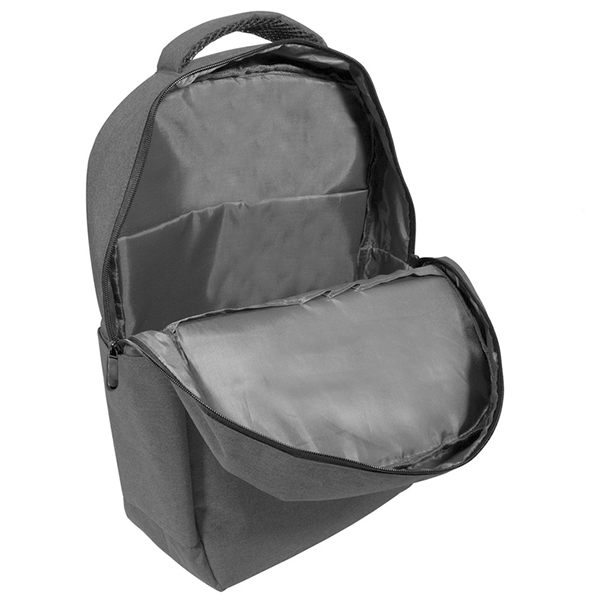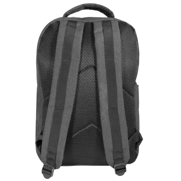 43 x 29 x 11 cm. Capacidad 11 litros. Poliester 300D Wulong. Interior con un compartimento para portanotebook, porta boligrafos y 2 compartimentos pequeños. En la parte exterior un bolsillo en el frente con cierre y otro bolsillo lateral izquierdo para trasladar tu botella y mantenerte hidratado. Correas y espalda acolchonadas con red. Tiradores de cierres metálicos y hebillas regulables plásticas.