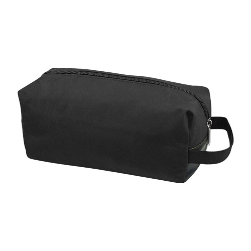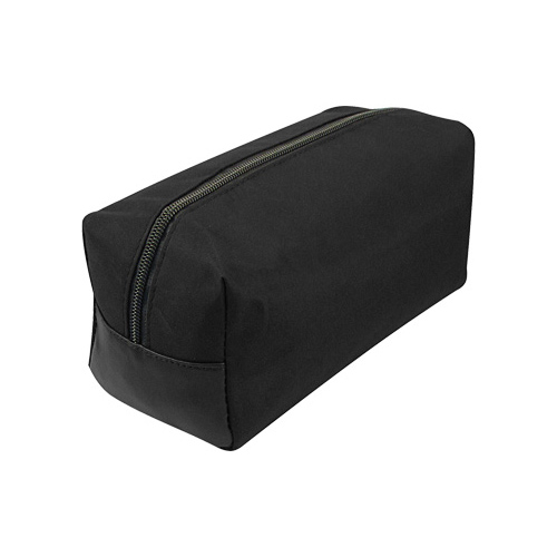 Necessaire rectangular de microfibra negra. Terminaciones en simil cuero negro.