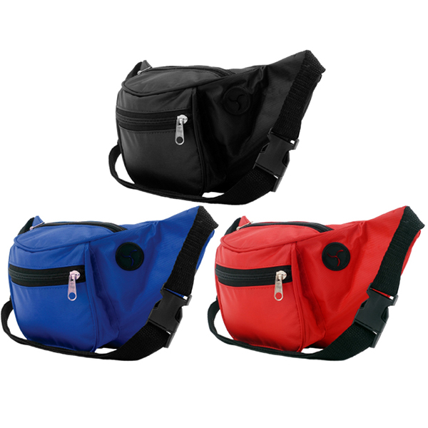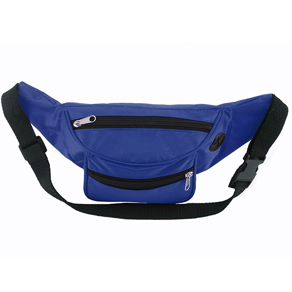 Polyester 420D. 33 x 14,5 cm.2 bolsillos.Salida para audífonos.Correa ajustable.Herrajes Plásticos Área de Impresión: 10 x 6 cm