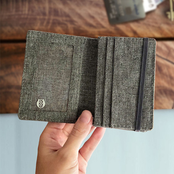 U CARD. Billetera con tarjetero, fuelle interno, espacio guarda tarjeta transparente y elástico para un mejor cierre.