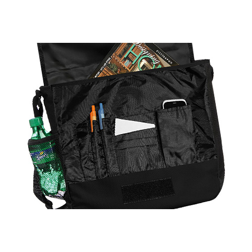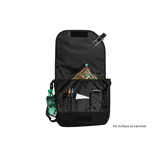 Maletín Portadocumentos de tela raquelada Polyester 600D modelo «Messenger», con solapa delantera, organizador interior y salida para auriculares.
