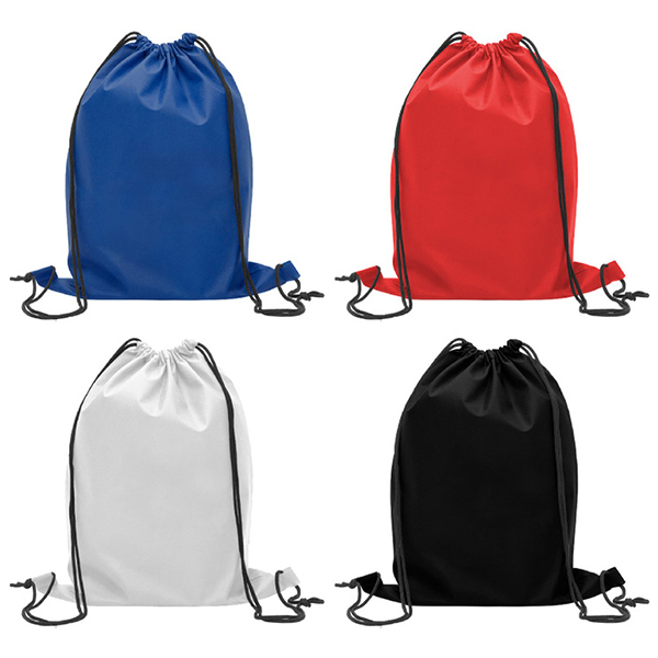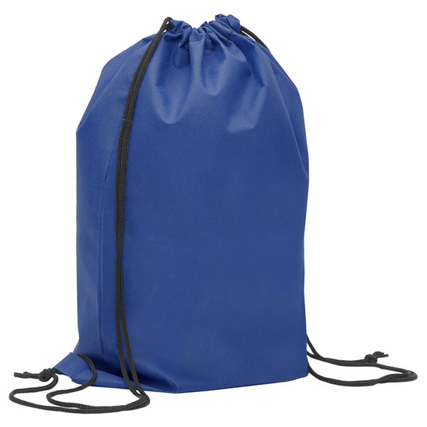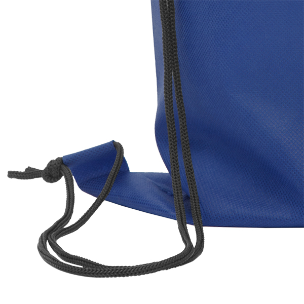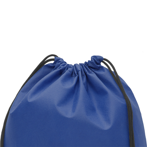 41 x 31 cm. Non Woven. Mochila con dos cordones. Los cordones sirven para llevar la mochila en la espalda. La parte superior se cierra ajustando los cordones. En la parte inferior los cordones pasan por un ojal.