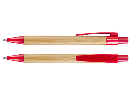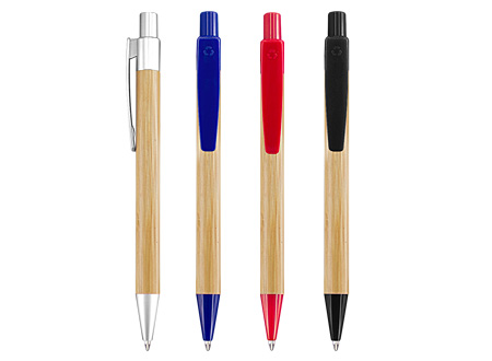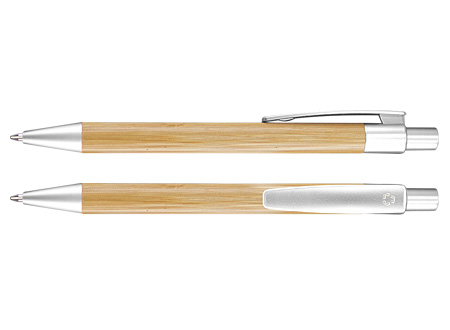 Bolígrafo modelo «Sustenta». Cuerpo de madera de Bamboo, terminales de plástico PET reciclado. Escritura azul.