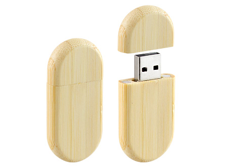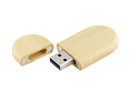USB Pendrive de 8GB de capacidad, 100% en madera de Bamboo, con tapa imantada para cierre fácil. Presentación en estuche de cartulina natural.
