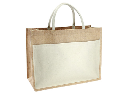 Bolso grande de Yute natural con amplio bolsillo delantero de Canvas 100% Algodón natural de 250g/m2 (9 onzas). Cuenta con 2 asas de algodón natural relleno de 40 cm. c/u aprox.