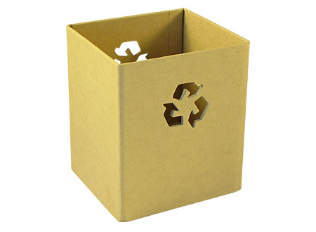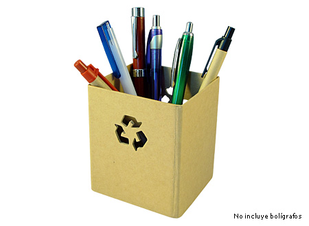 Porta-Lápices Ecológico plegable, en cartón reciclado. Incluye ícono «Reciclable» calado.