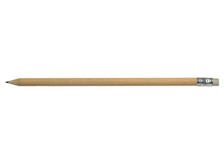 Lápiz grafito largo de madera barnizada. Cuerpo 100% cilíndrico, ideal para imprimir logos sin problemas. Incluye goma de borrar y viene con punta lista.