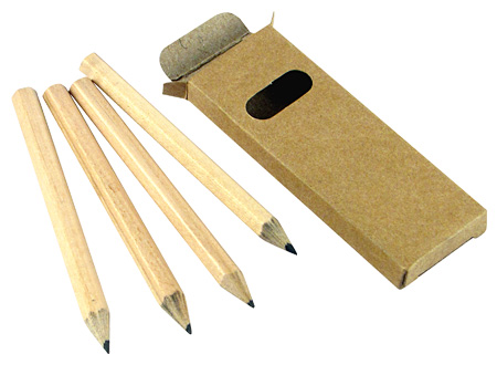 Set de 4 Lápices Grafito Negro hexagonales, en Estuche rectangular de Cartón reciclado con ventana.