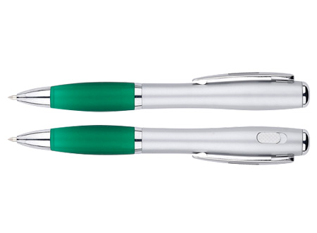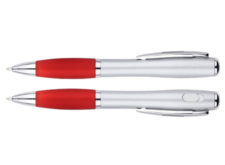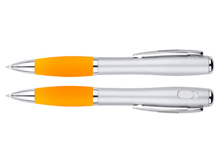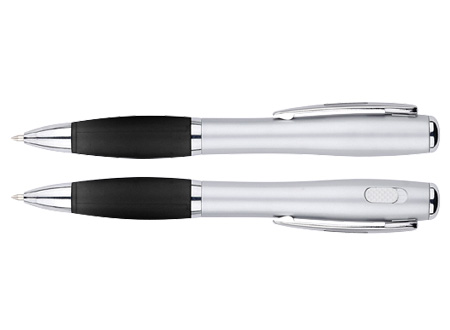 Bolígrafo plástico con linterna LED. Escritura Azul.