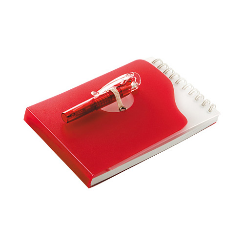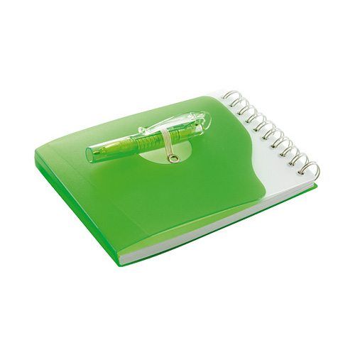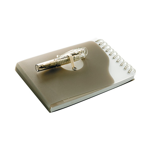 Libreta de Apuntes 68 hojas, con Bolígrafo 8 cm incluido. Tapa y contratapa plásticas rígidas en colores empavonados.