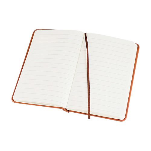 Libreta tamaño A6, con cubierta de cartón piedra forrada en PU simil cuero de 3mm de espesor. Interior 80 hojas lineadas amarillas de 80gsm. Incluye banda separador de hojas al tono. Presentación individual en bolsa de polipropileno.