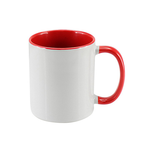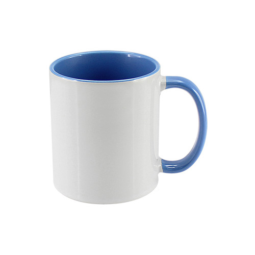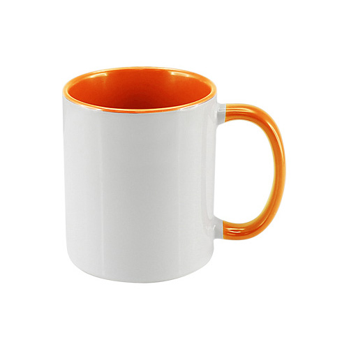 Tazón Cerámico blanco con interior y asa de color, cobertura exterior con polímero especial marca ORCA COATINGS(R) para una sublimación de primera calidad. Cada unidad se entrega dentro de su caja individual de cartón blanco.