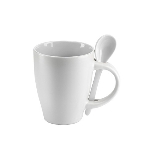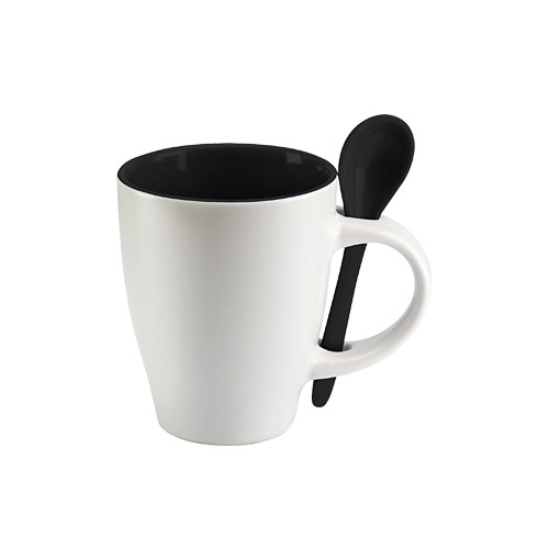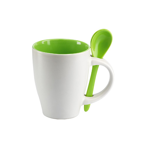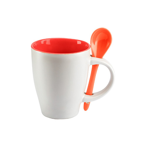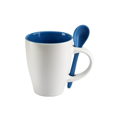 Tazón Cerámico Blanco opaco con interior y cuchara de color. Presentación en caja de cartón blanco.