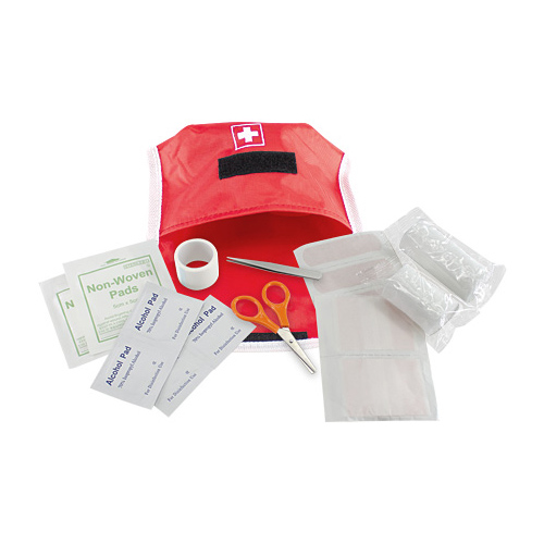 Botiquín de Emergencia modelo «Redcross», en tela Polyester 600D. Incluye 17 accesorios.
