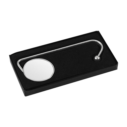 Colgador Metálico de sobremesa para Bolsos y Carteras. Presentación en estuche laminado negro con cuna aterciopelada.