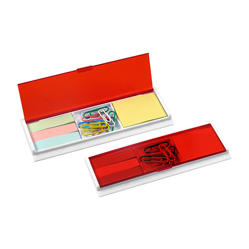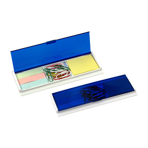 Porta Post-it con Clips de colores. Incluye 1 taco post-it de 40 hojas de 4,8 x 3,6 cm + 3 tacos de 25 banderitas post-it de 4,8 x 1,2 cm + 10 clips recubiertos de colores. Regla de 14 cm y de 5,5″.