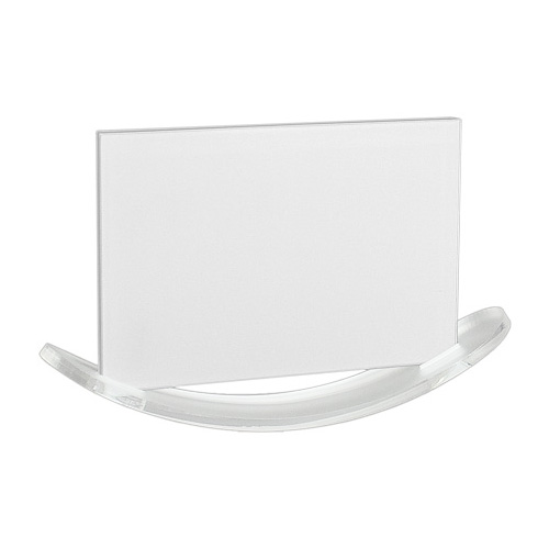 Porta-Retrato balancín para Sublimación. Base curva Acrílico frozen. Porta-Foto de Vidrio de 15.3 x 10.2 x 0.3 cm. Presentación en caja de Cartón blanco.