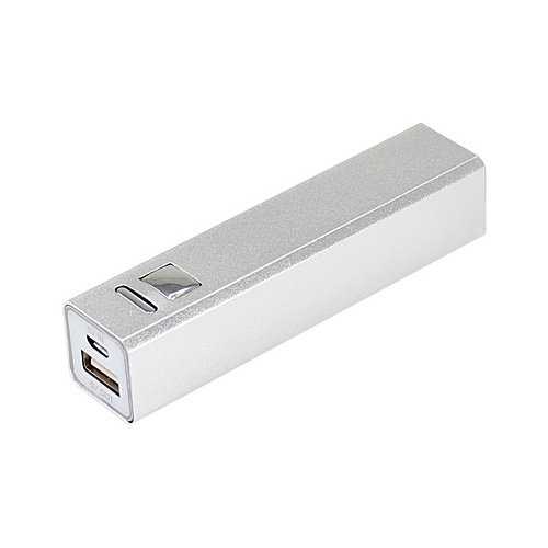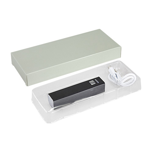 Power Bank cargador USB portátil metálico, modelo «Basic». Capacidad 2200mAh. Incluye cable USB con terminal para celular. Batería recargable incorporada. Presentación en caja de regalo de cartulina gris.