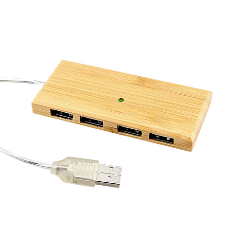 Hub 4 puertos USB de madera de Bamboo.