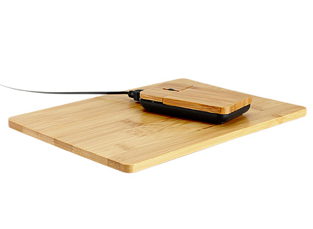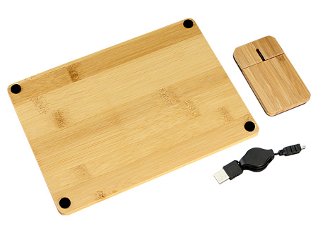 Set USB Mouse óptico + Pad 100% de madera de Bamboo. Incluye cable y conector USB.