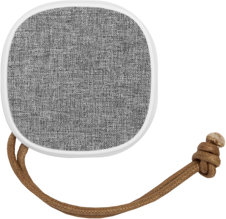 9 x 9 x 4,4. Plástico. Parlante/bocina bluetooth cubierto en tela. En la parte inferior engomado antideslizante con botones para encender o apagar, play/pausa y responder llamadas. Botón de retroceso y avance, este último, si se mantiene presionado durante unos segundo pasa al siguiente sonido, estos mismos botones permiten aumentar o disminuir el volumen. Entrada USB incluye cable. Lazo de tela color marrón que permite colgarlo. Alcance 10 mts. aprox. Duración de la batería 8 – 12 hs aprox.