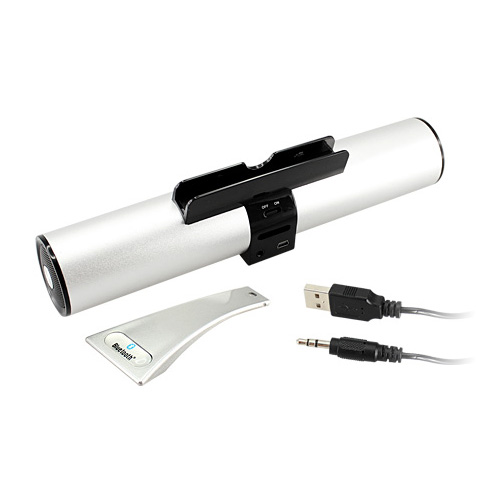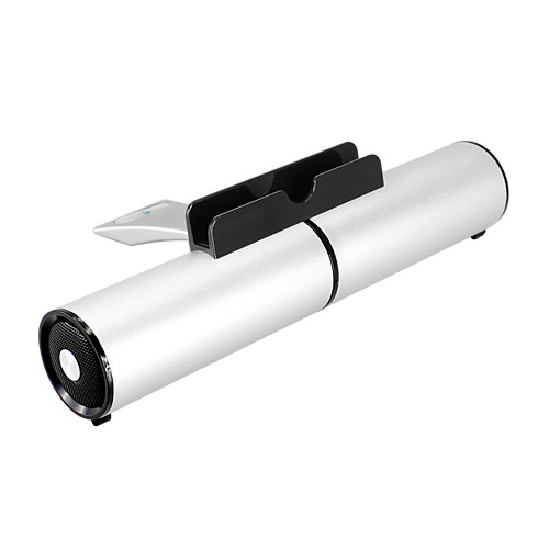 Altavoz portátil cilíndrico inalámbrico Bluetooth 2.1 + EDR. Con cargador USB/microUSB y manual de uso en inglés. Batería incorporada. Rango: 10 metros aprox.