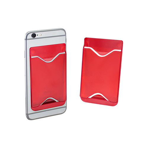 Porta-Tarjeta para Celular. Tamaño para Tarjeta de Crédito. Contiene adhesivos posteriores para fijación.