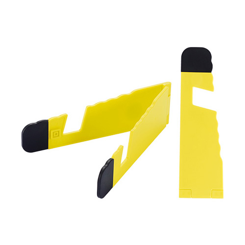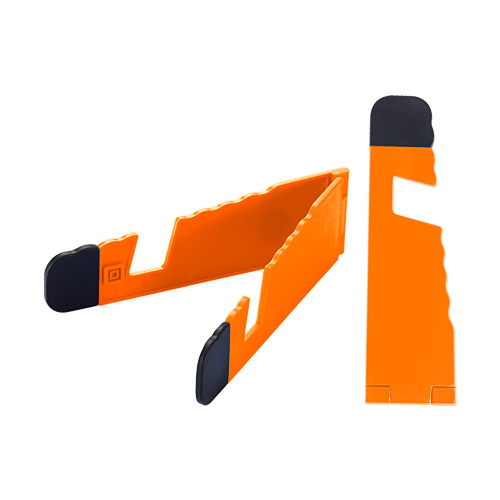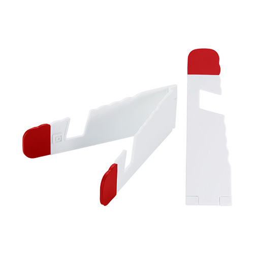 Soporte plástico abatible para iPad y Celular, con goma antideslizante en ambos terminales.