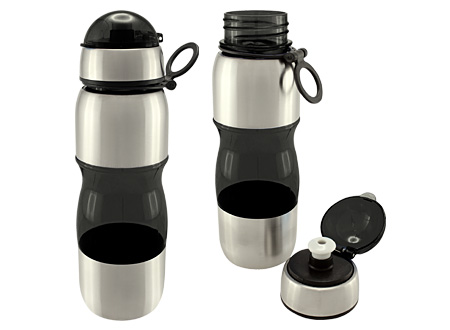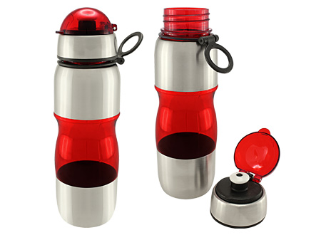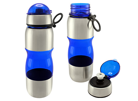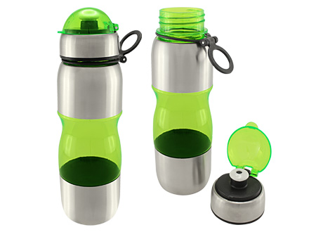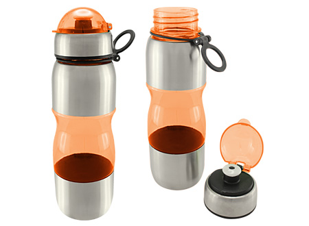 Botella deportiva modelo «Trend», de Acero Inoxidable con plástico rígido traslúcido. Para líquidos fríos (no térmico).