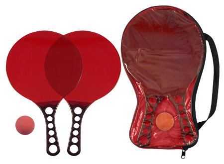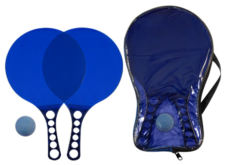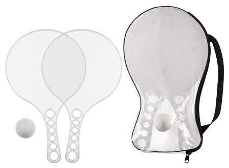 Set de Paletas de Playa de Acrílico de color Traslúcido, incluye estuche de PVC y pelotita de goma.