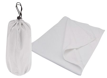 Toalla deportiva en tela Microfibra para Sublimación. Presentación dentro de bolsito de nylon 190D/PU.