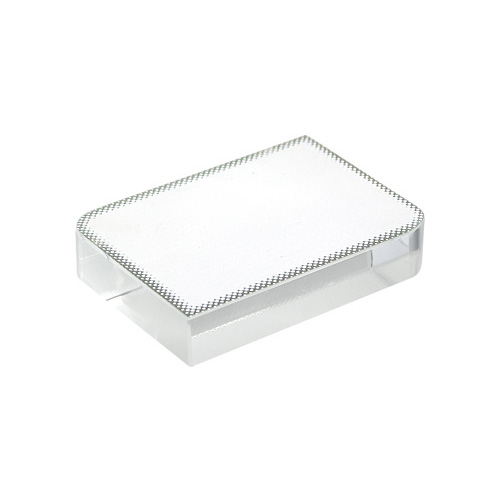 Trofeo rectangular de Cristal sólido para Sublimación. Presentación en caja de cartón azul con cuna amarilla.